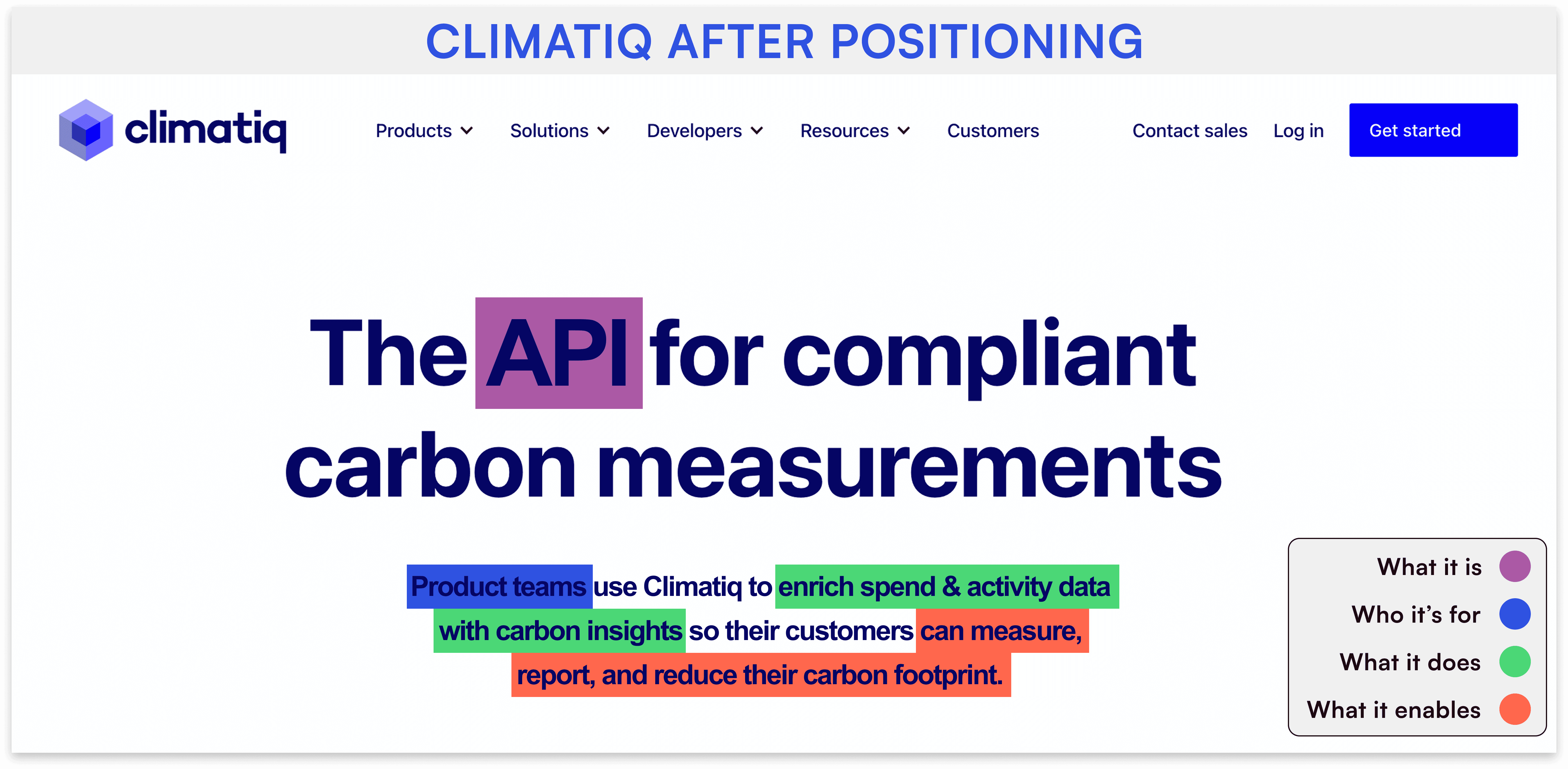 Climatiq’s challenge was that their carbon calculation API, while powerful, was too complex for customers to understand and buy. Visitors to the website often left unsure whether Climatiq was a data provider, a full calculation engine, or a standalone platform.